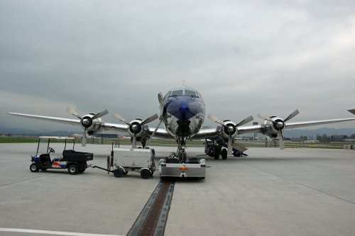 DC-6 der Flying BullsAls eingetragene Mitglieder der Super Constellation Flyers geniessen wir manchmal besondere Privilegien. Das Angebot, mit der DC-6 der Flying Bulls von Red Bull am 20. April 2013 von Zürich nach Salzburg zu fliegen, wird ohne zu zögern angenommen. Die Schliiferin bucht dieses Abenteuer umgehend.