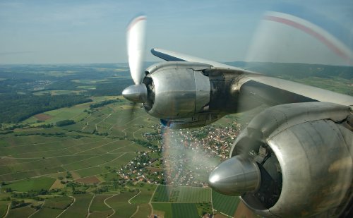Klassikwelten 2009Am 23. Mai 2009 fliegen wir mit der Superconstellation von Basel dem Rhein entlang nach Friedrichshafen am Bodensee. Dort besuchen wir in der Messe Friedrichshafen die Sonderausstellung Klassikwelten. Unser zweiter Flug mit dem Oldtimer der Super Constellation Flyers ist wiederum ein Hammererlebnis erster Güte!